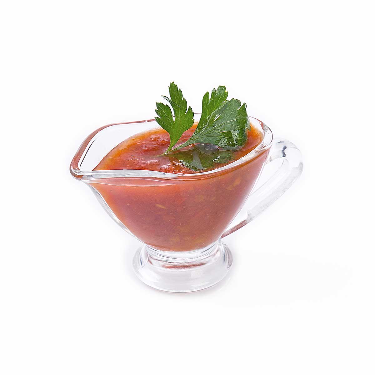 Лучший соус для мяса, жаренного на гриле. Приготовлен из свежих томатов, болгарского перца, сладкого яблока, перца чили, репчатого лука и чеснока. Особенную пикантность соусу придают ароматные пряности: хмели-сунели и кориандр. Дополните вкус любимых блюд или используйте для создания маринадов.