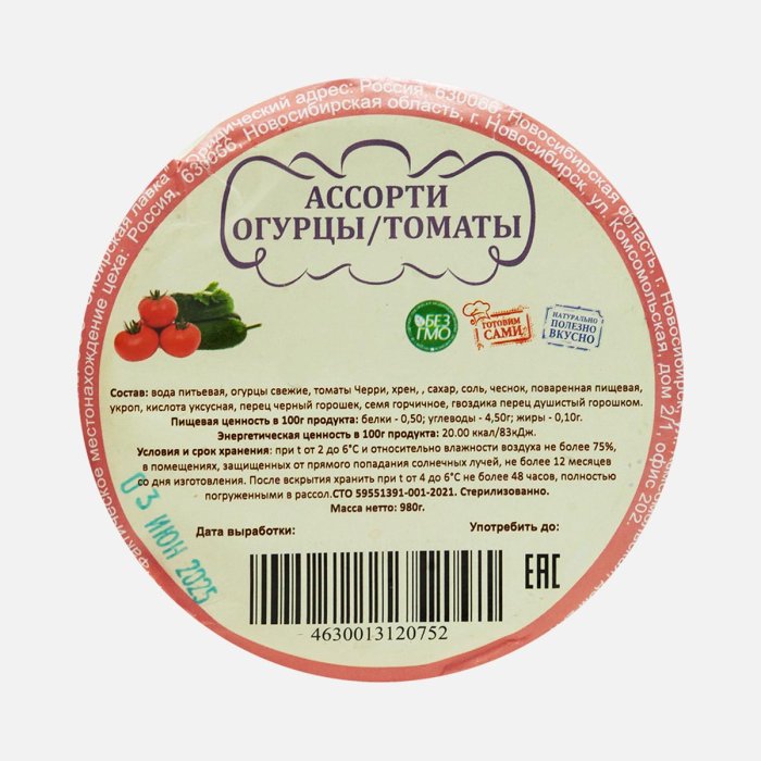 Ассорти огурцы/томаты ст/б 980г