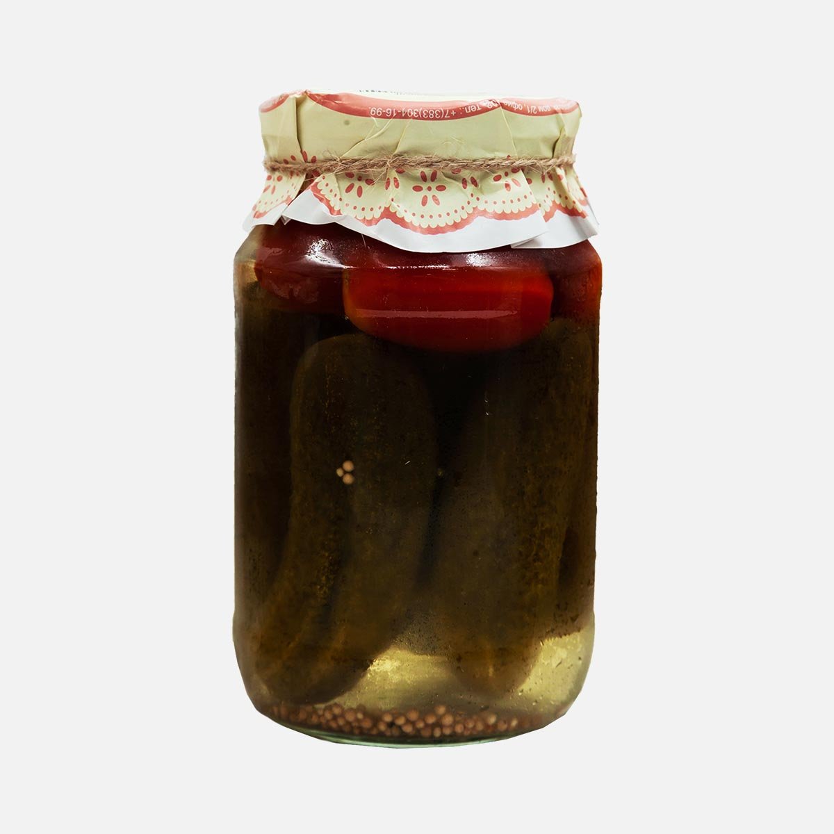 Вода питьевая, огурцы свежие, томаты Черри, хрен, сахар, соль, чеснок, поваренная пищевая, укроп, кислота уксусная, перец черный горошек, семя горчичное, гвоздика, перец душистый горошком.