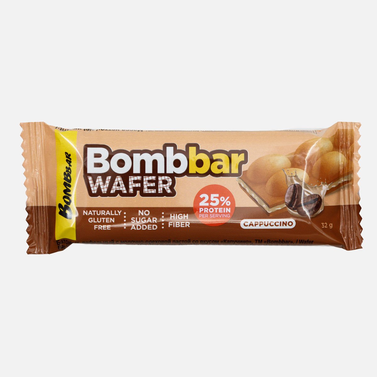 Батончик Бомббар вафельный Капучино с молочно-ореховой пастой 32г