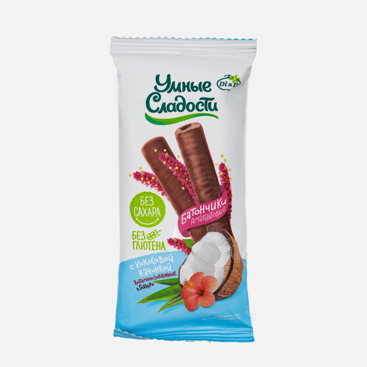 Батончики Умные сладости амарантов Кокос в глазури б/глютена 20г