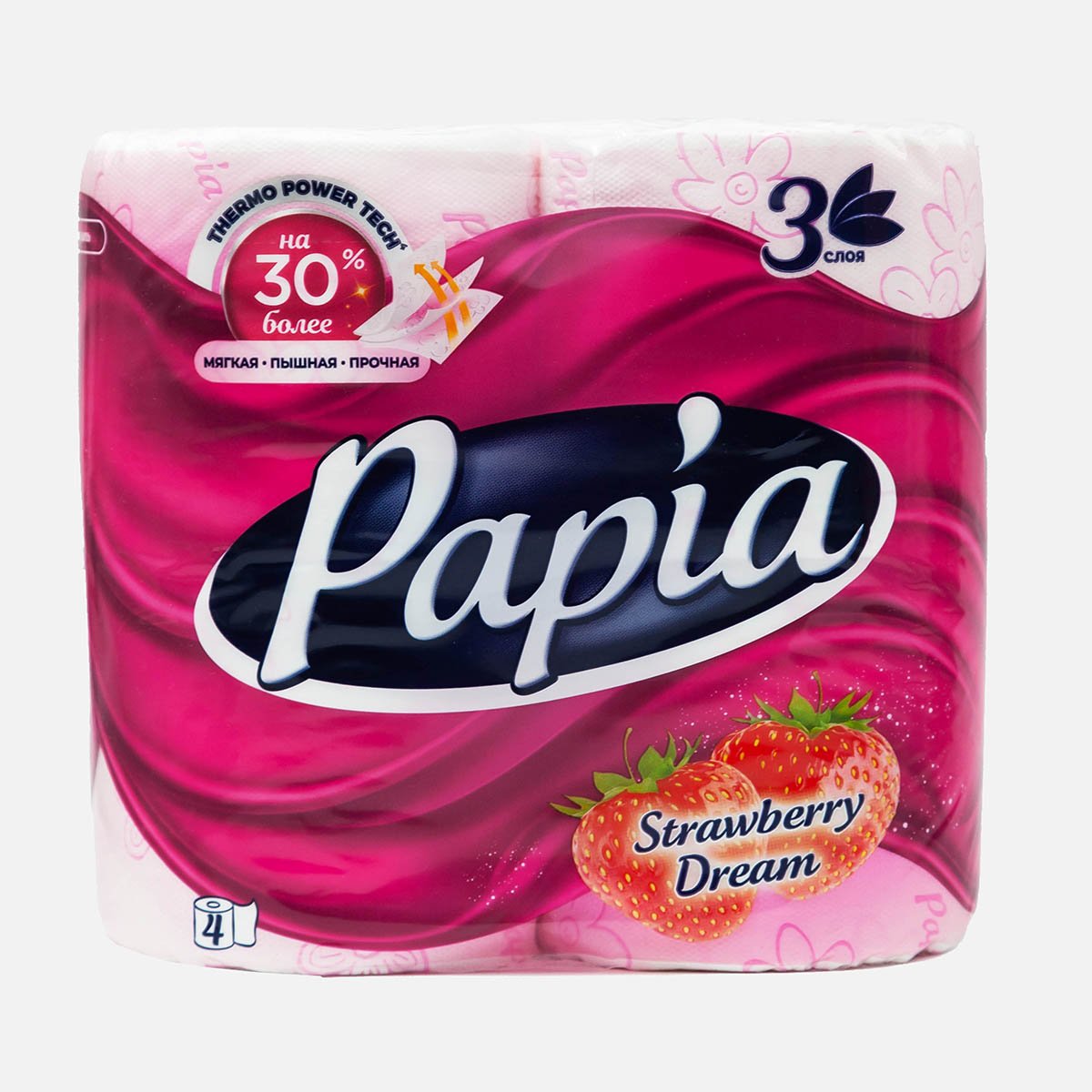 Бумага туалетная Папиа Клубничная Мечта розовая с рисунком 3сл 4рул