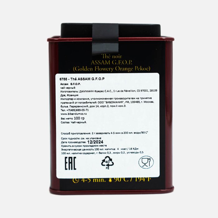 Чай Дамманн Ассам Гфоп Черный Индийский №10 ж/б 100г