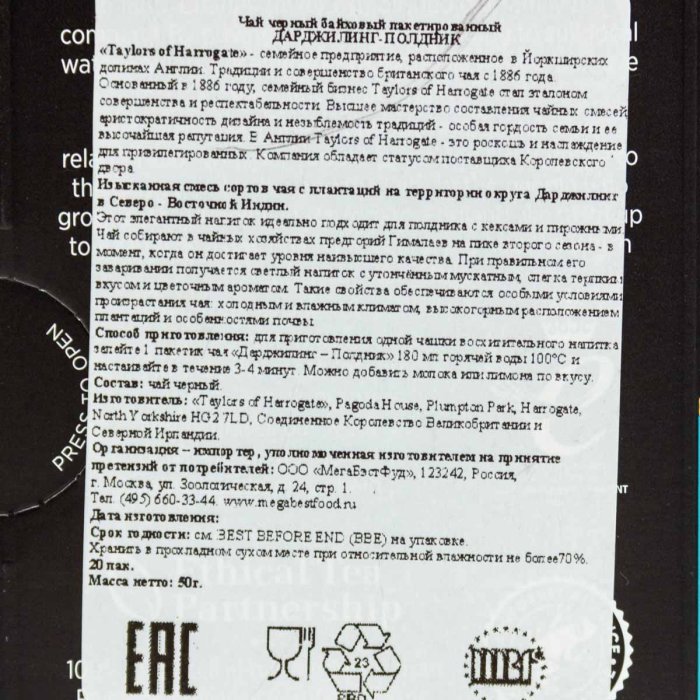 Чай ТэйлорОфХаррогейт Дарджилинг Полдник черный 20пак 50г