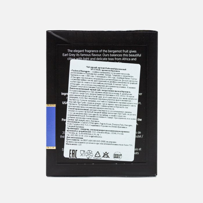 Чай ТэйлорОфХаррогейт Эрл Грей с маслом бергамота к/к 20*50г