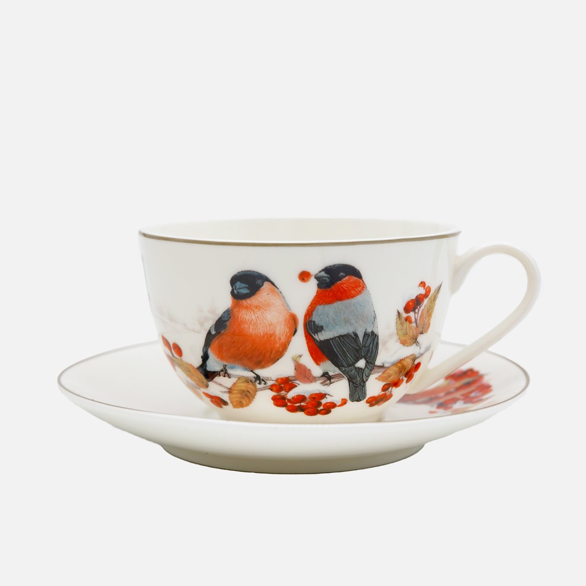 Чайная пара Лефард 300мл Лесная сказка Снегири фарфор 16х14,5х23см