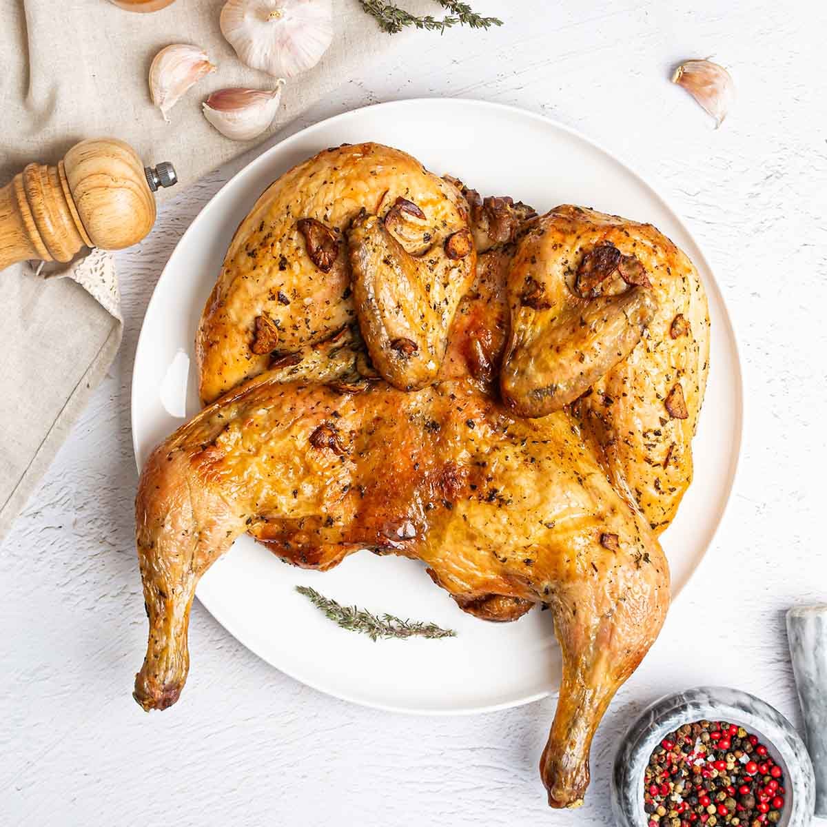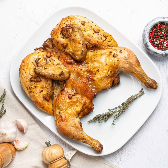 Цыпленок табака в чесночном маринаде жареный вес