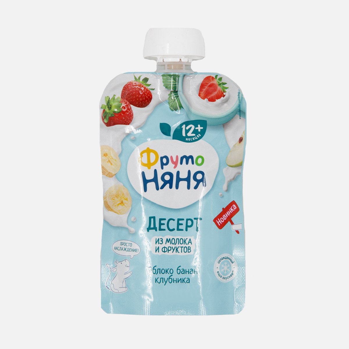 Десерт ФрутоНяня из ябл/бан/клубник с молоком/сах с 12мес дой/пак 90г
