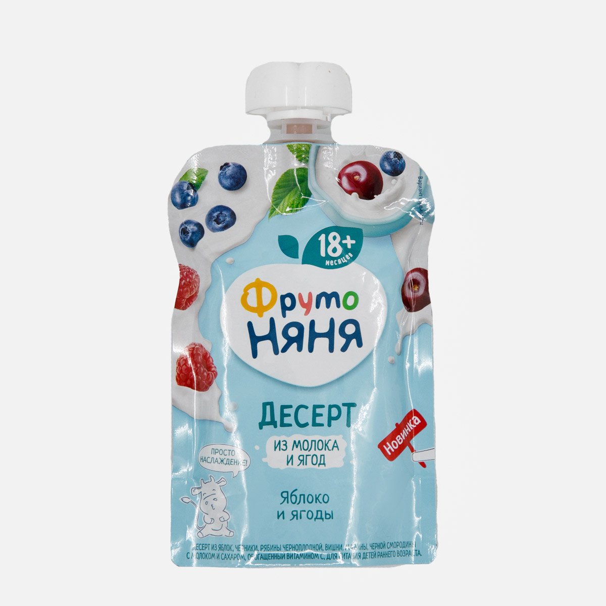 Десерт ФрутоНяня из яблок/черн/ряб с молоком/сах с 18мес дой/пак 90г
