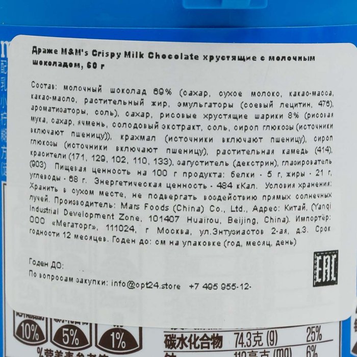 Драже М&Мs Криспи хруст с молоч шоколадом 60г