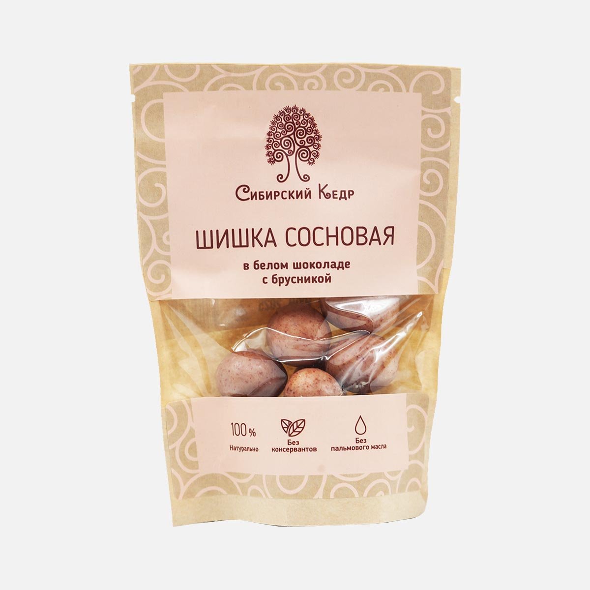 Драже Сибирский кедр Сосновая шишка в белом шоколаде с брусникой 60г