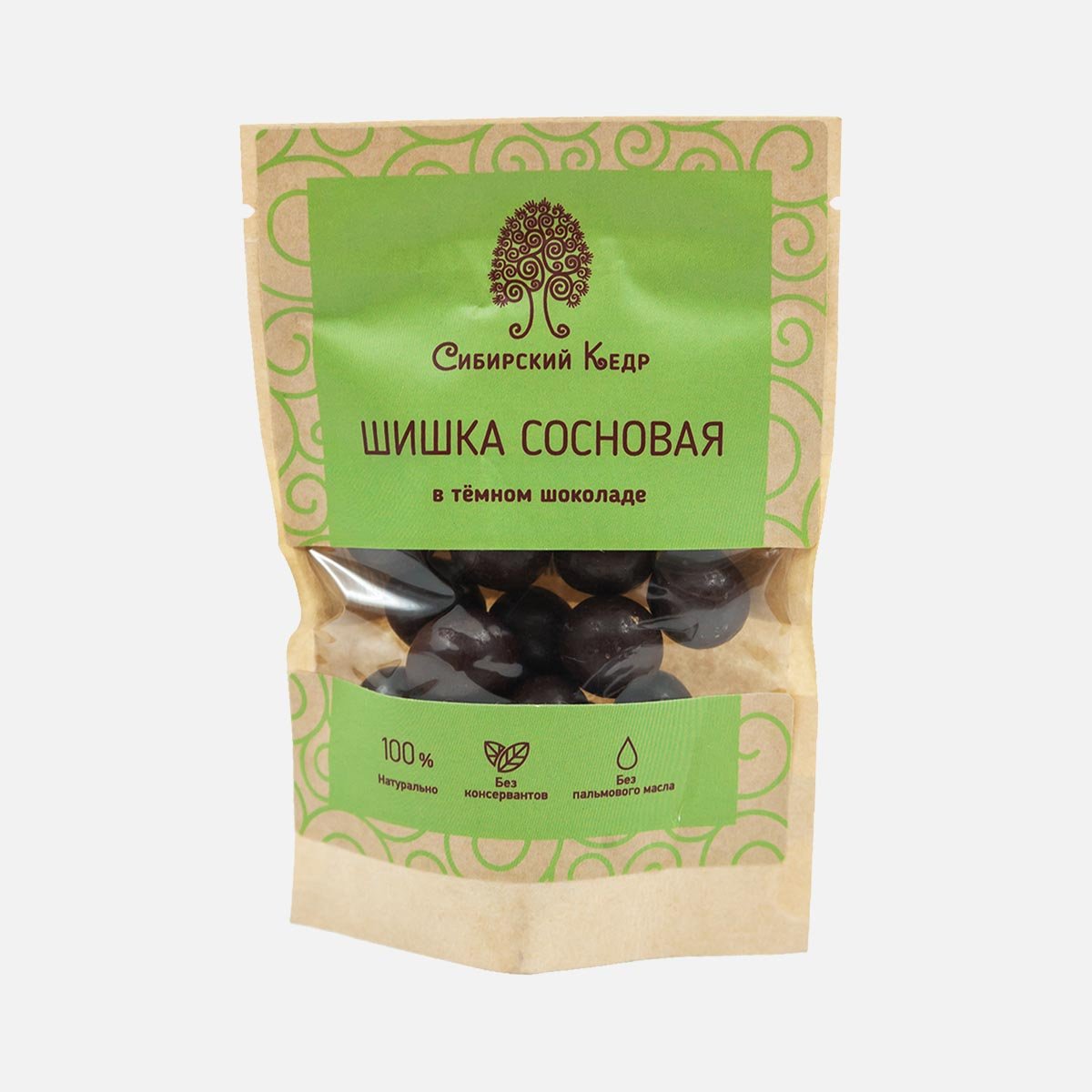 Драже Сибирский кедр Сосновая шишка в темном шоколаде 60г