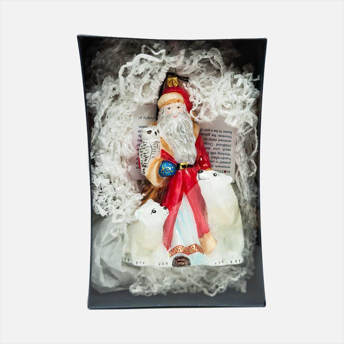 Фигурка Дед Мороз с совой и белыми медведями 13х1х16см стекло 4886К00