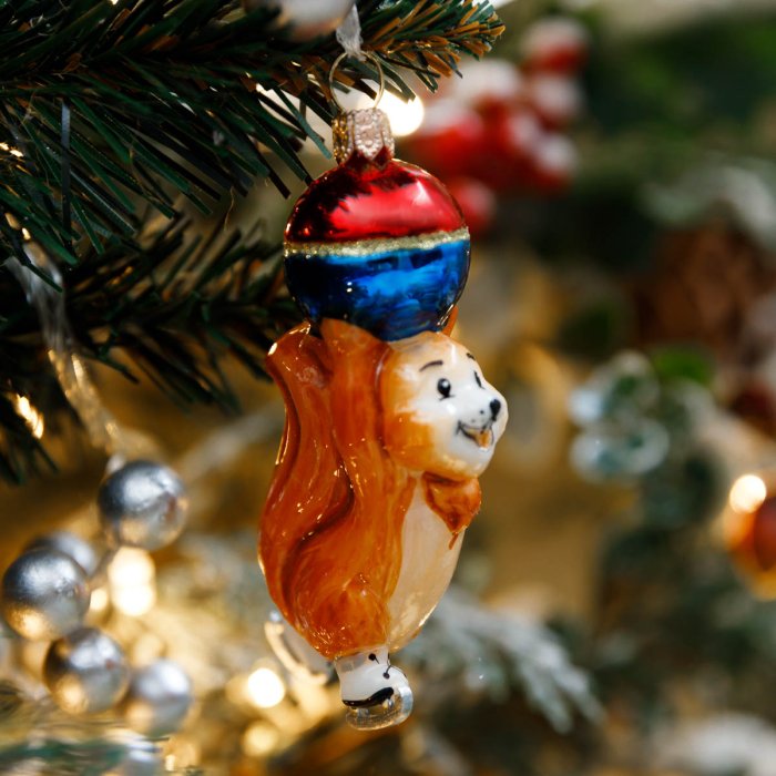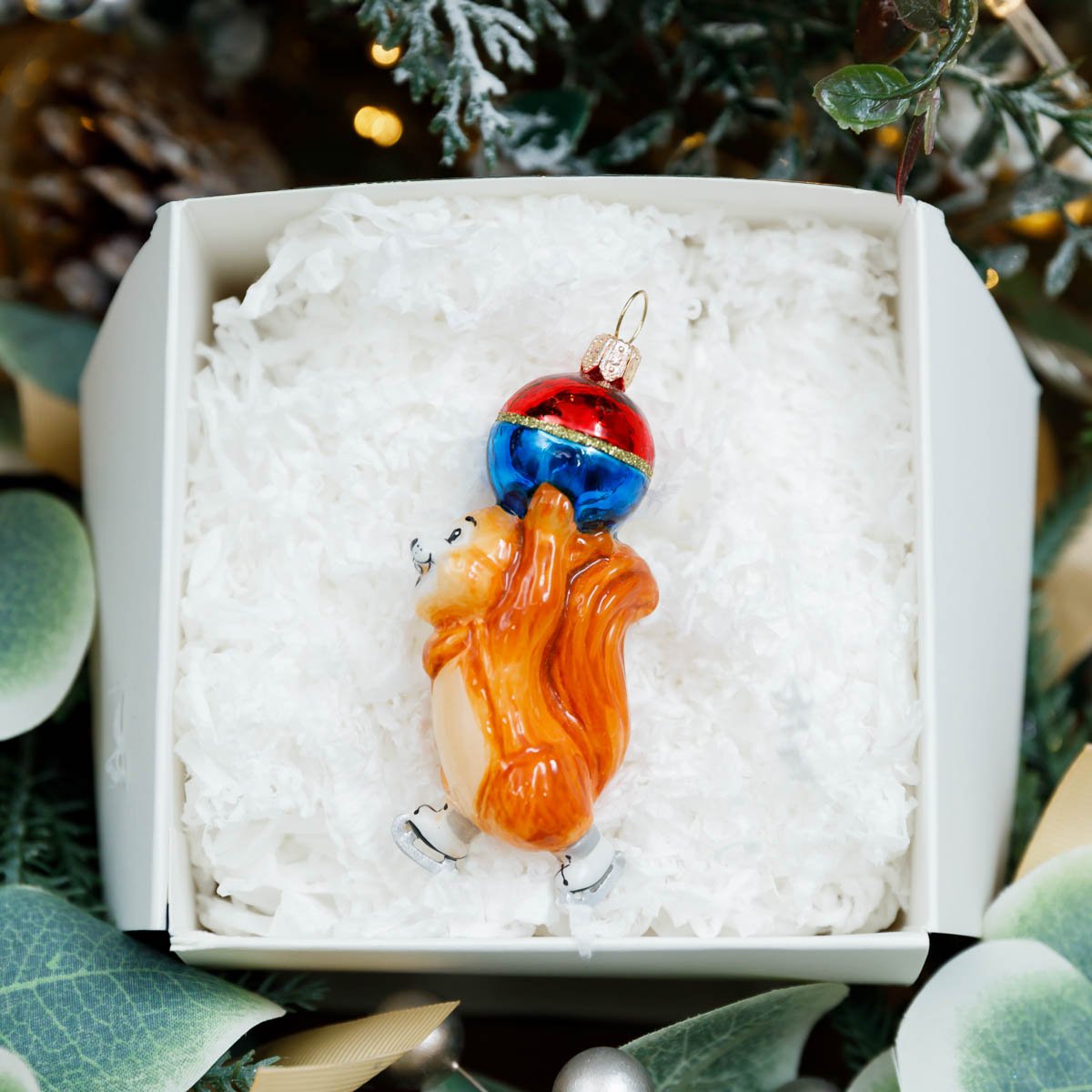 Фигурка Комозья Фэмили Белка на коньках с елочным шариком 12х9х2см
