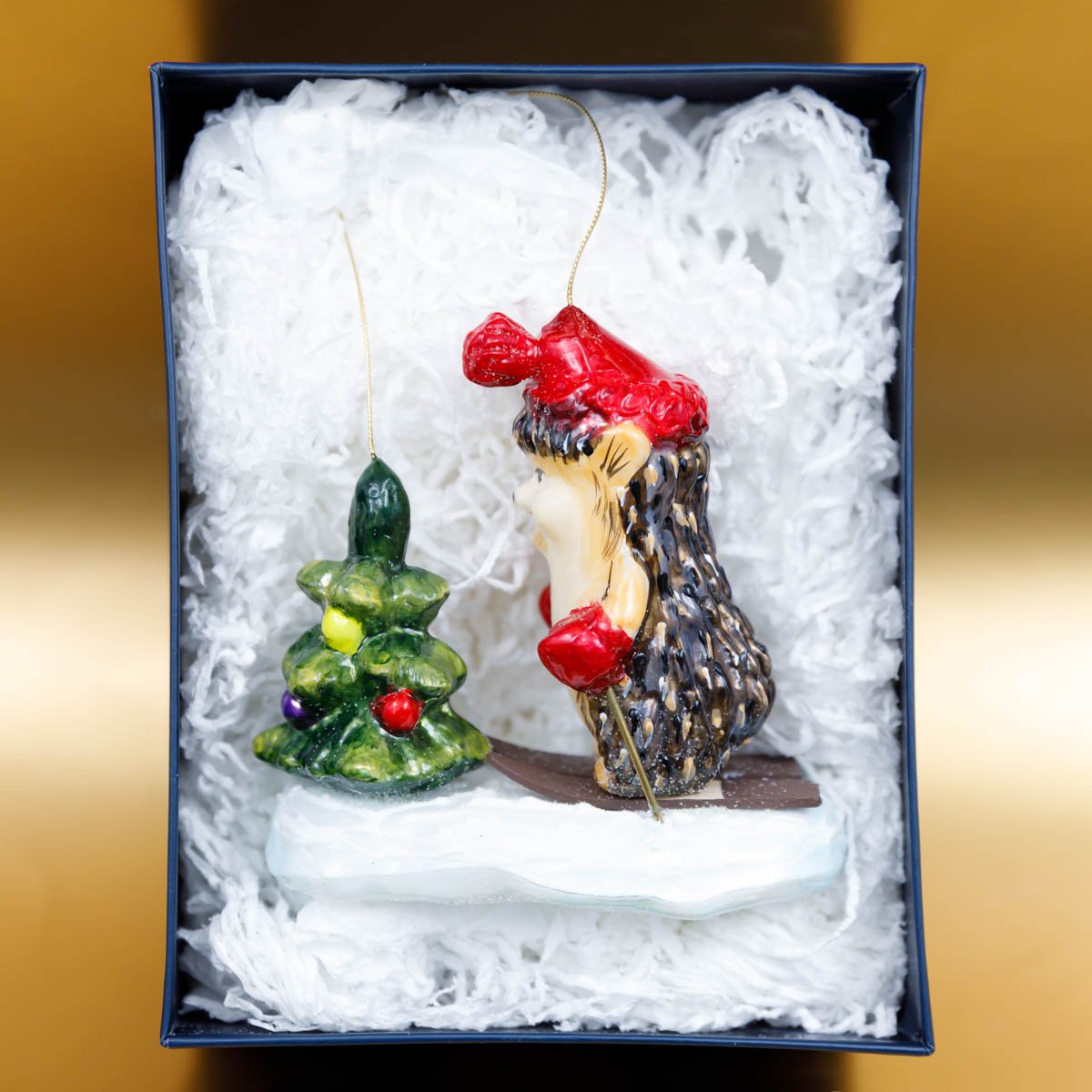 Фигурка Комозья Фэмили Ежик на лыжах 12х9х2см стекло 3248S00