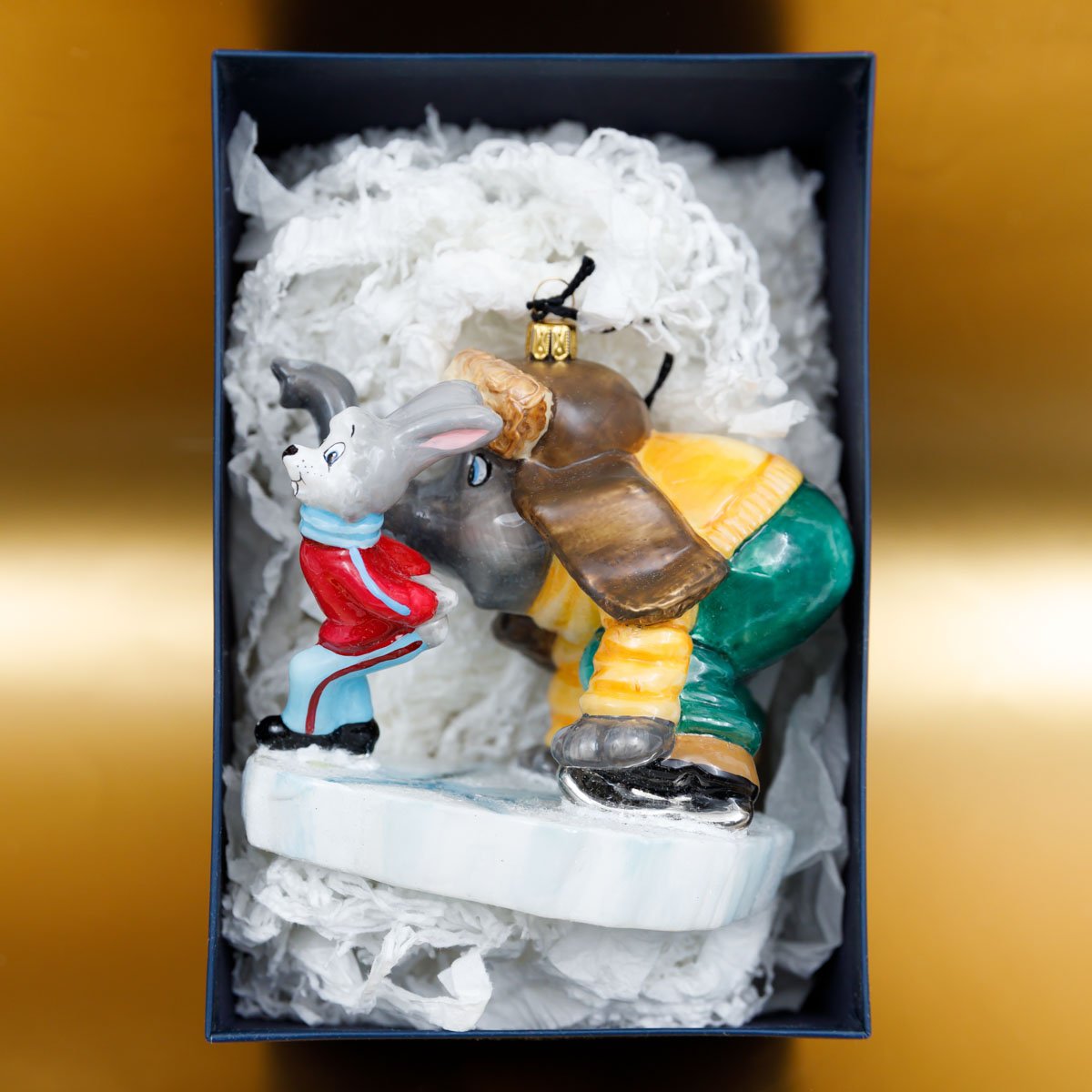 Фигурка Комозья Фэмили Катание на коньках со слоном и зайцем 12х9х2см