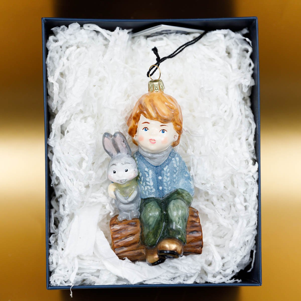 Фигурка Комозья Фэмили Мальчик с зайцем 9х6х15см стекло 4818К00