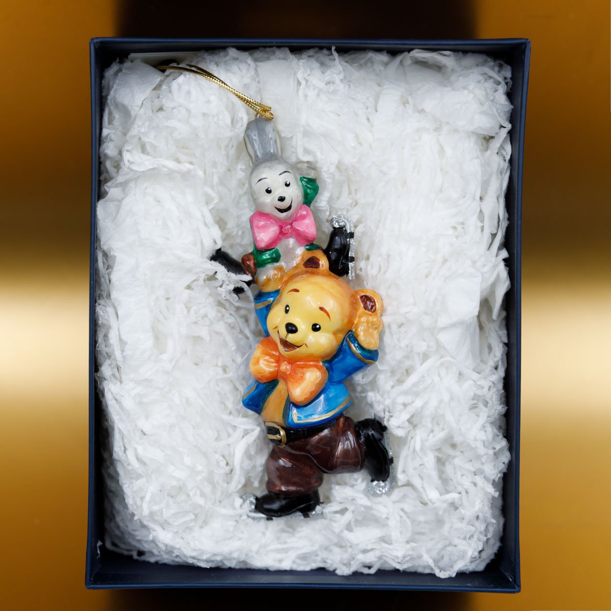 Фигурка Комозья Фэмили Мишка и заяц на коньках 13х11см стекло 3247S00