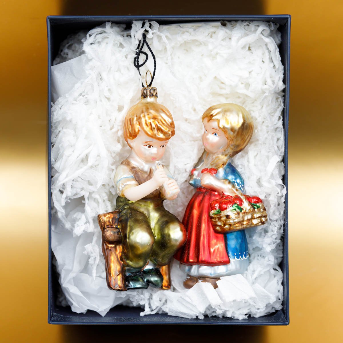 Фигурка Мальчик с трубкой и девочка с цветами 12х9х2 стекло 4670К01