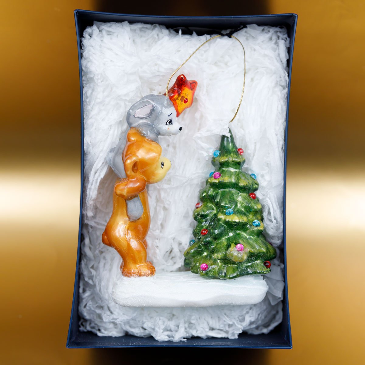Фигурка Мишка и заяц наряжает елку 9х6х15 стекло 3618S02