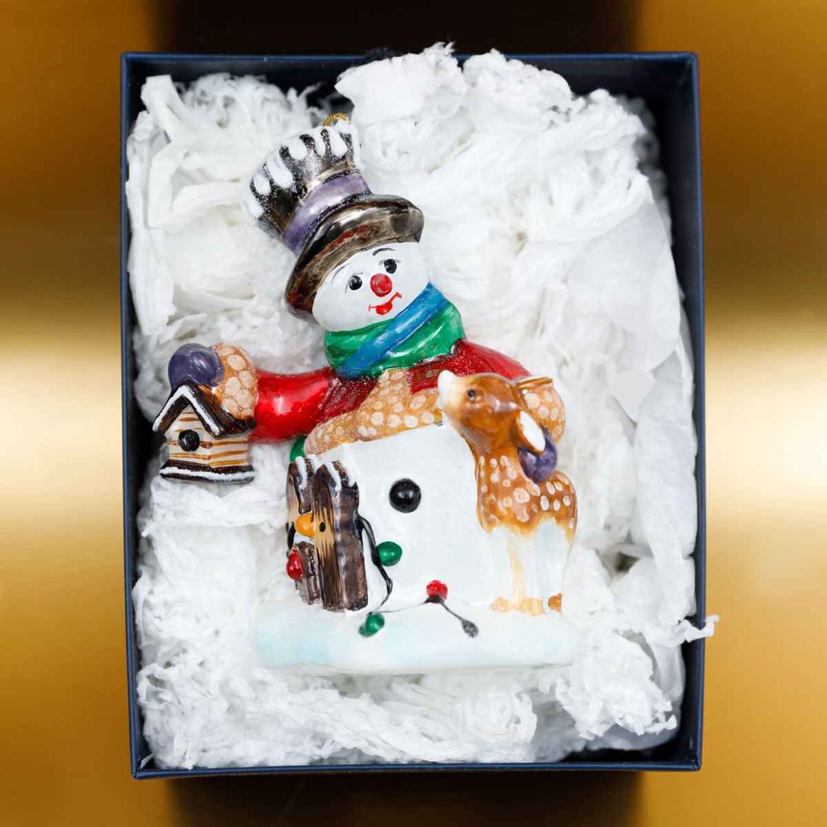 Фигурка Снеговик со скворечником и оленем 12х9х2 стекло 3040S00