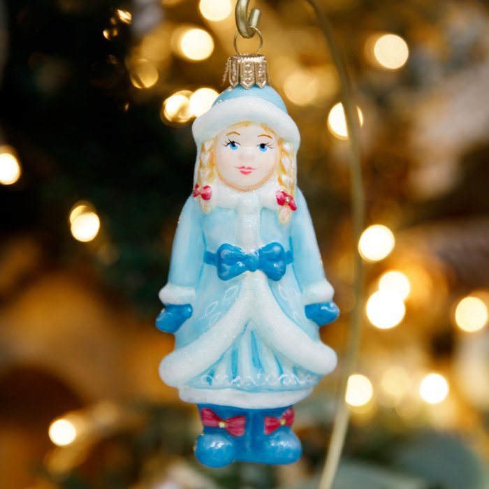ФигуркаСнегурочка с двумя косичками 12х9х2см стекло А017