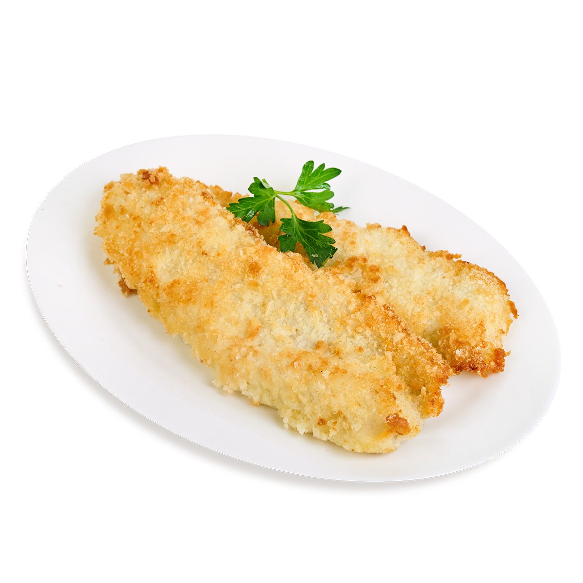 Минтай с/м, соус луковый, яйцо куриное, сухари панировочные, сок лимона, соль, перец черный молотый.