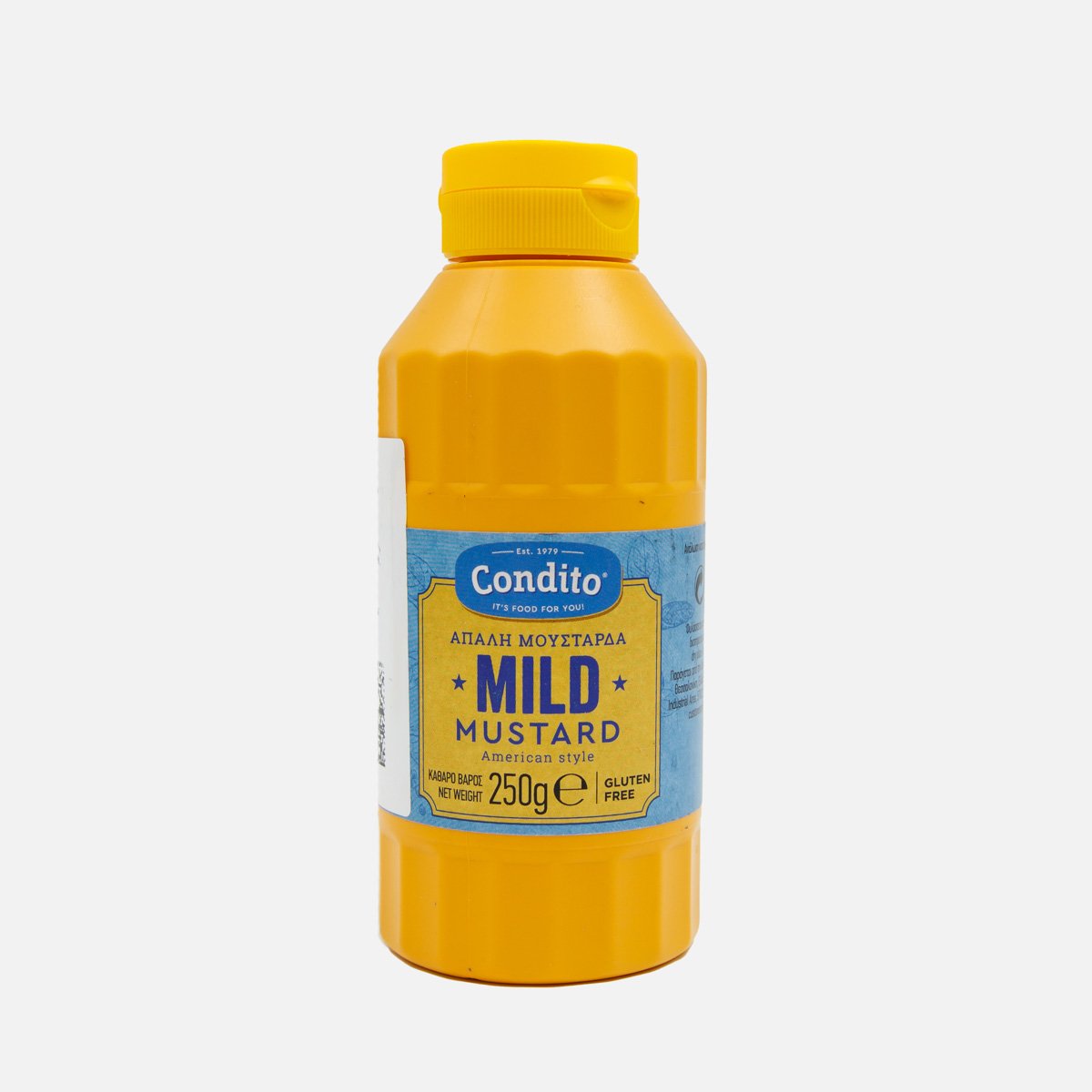 вода, горчичное семя, уксус, сахар, соль., кукурузный крахмал, консервант: сорбат калия, стабилизатор: ксантановая камедь, ароматизаторы, краситель: куркумин.