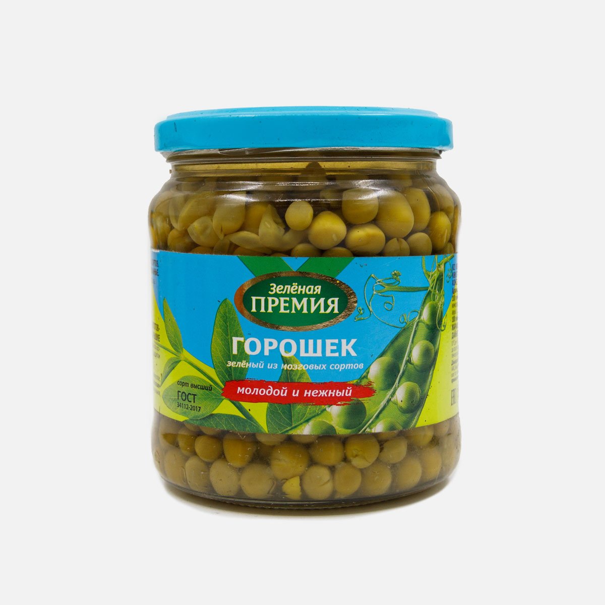 Горошек Зелёная премия зелёный из мозговых сортов в/с ст/б 450г
