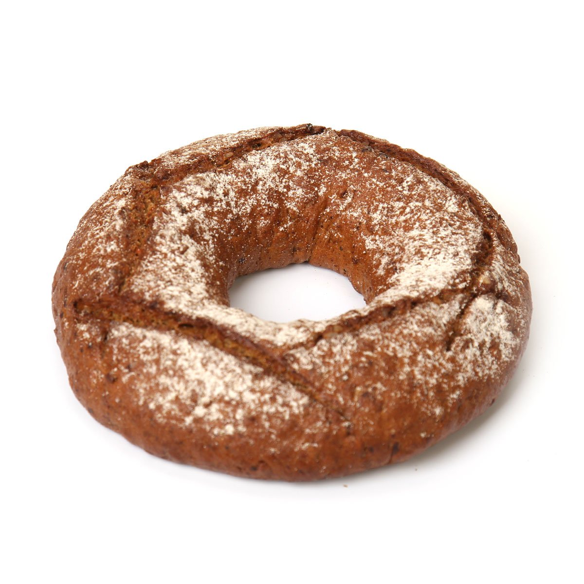 Оригинальный хлеб, который выпекается в форме традиционного русского калача. В составе пшеничная и ржаная мука, сушёная морковь и семена подсолнечника. Имеет насыщенный вкус с лёгкими сладкими нотками и потрясающий ореховый аромат. Прекрасно подойдет к первым и вторым блюдам.