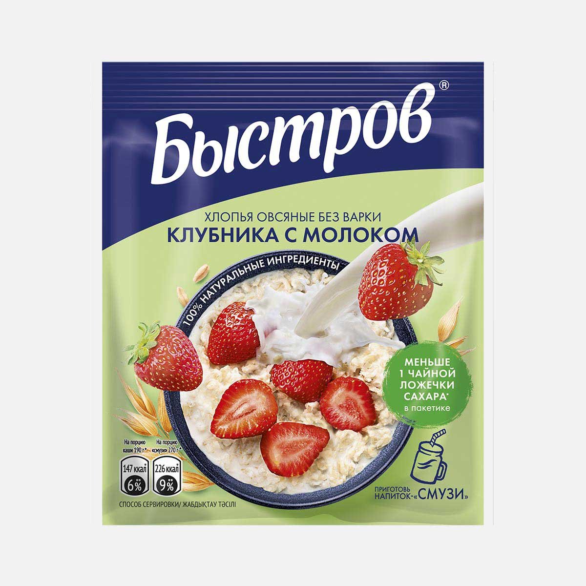 Хлопья Быстров овсяные Клубника с молоком без варки 40г