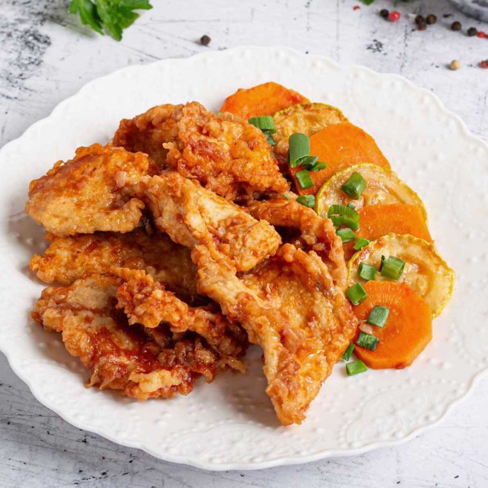 Индейка, морковь свежая, кабачки свежие, крахмал кукурузный, яйцо куриное, чеснок свежий, масло подсолнечное, кетчуп, соевый соус Киккоман, уксус столовый, сахар песок, лук зеленый, корень имбиря