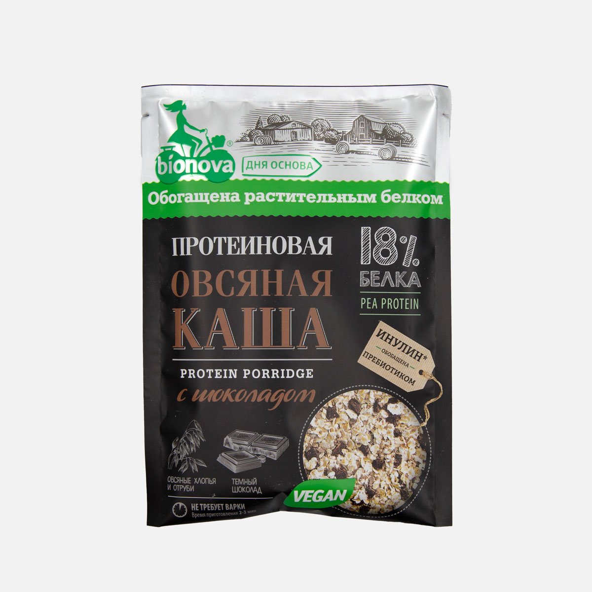 Каша Бионова овсяная с шоколадом протеиновая веган 40г