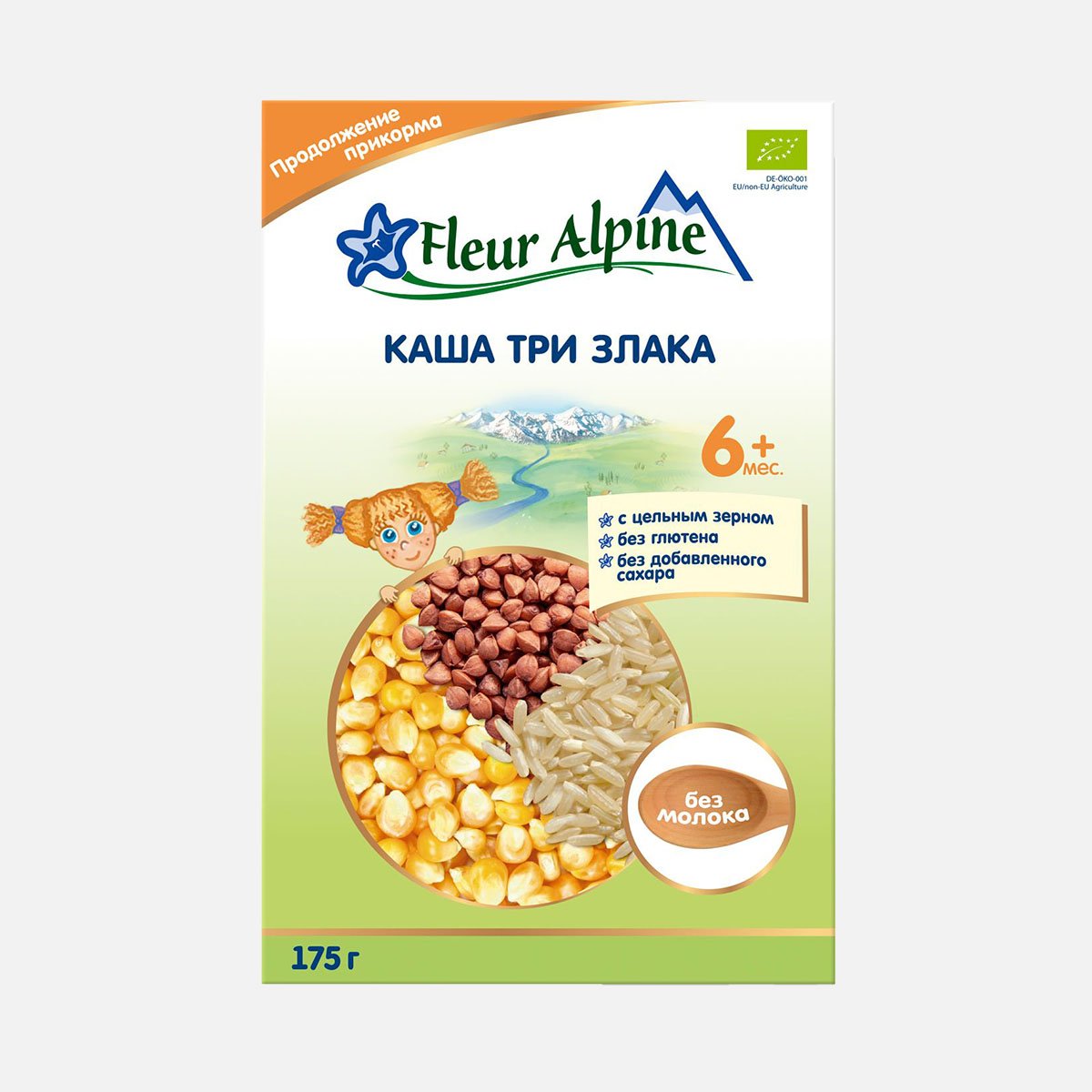 Каша Флер Альпин Органик 3 злака безмолоч с 6мес к/к 175г