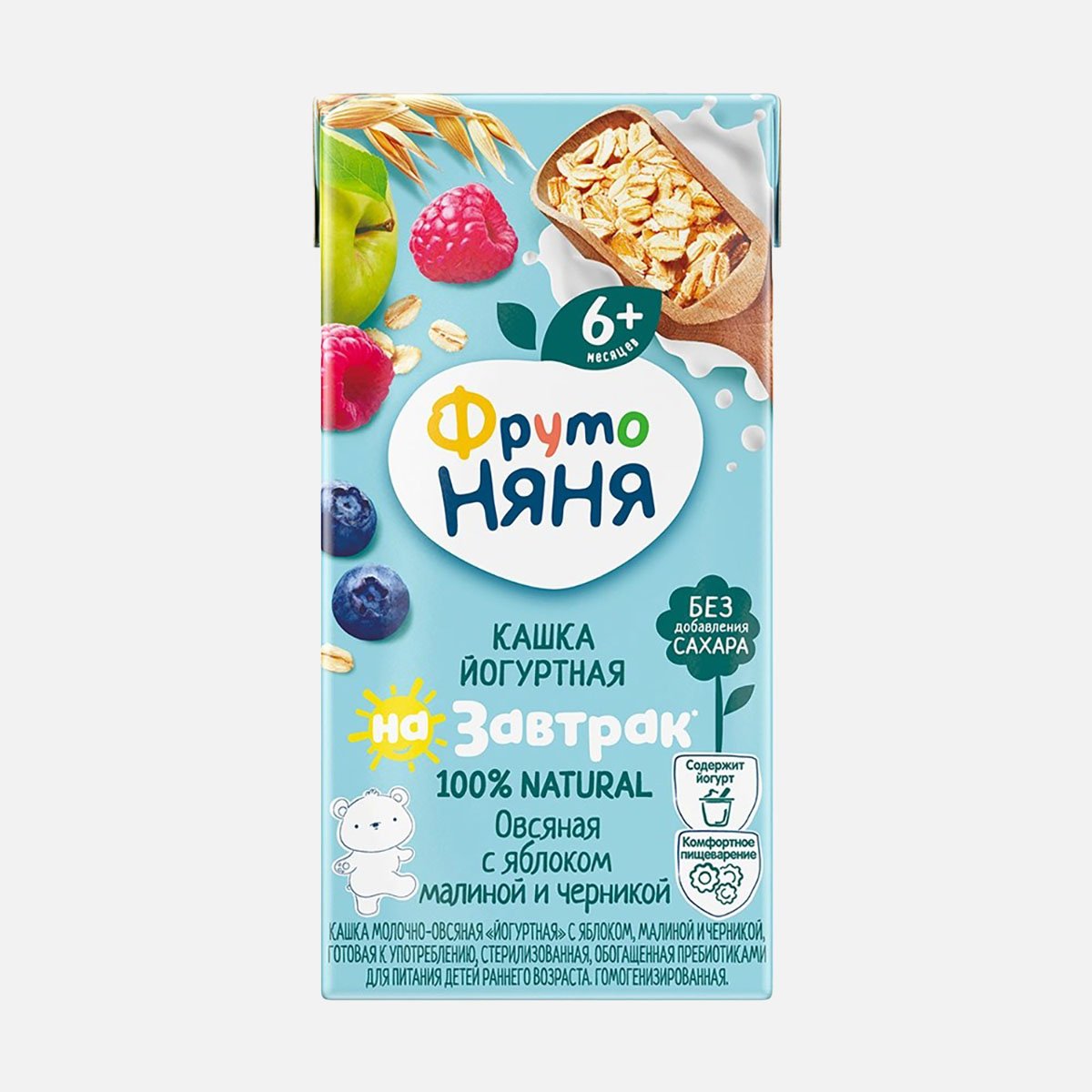 Кашка ФрутоНяня мол-овсяная с яблоком/малин и черникой т/п 0,2л
