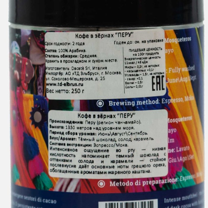 Кофе Голден Бразил Кофе в зернах Перу 100% Арабика ж/б 250г