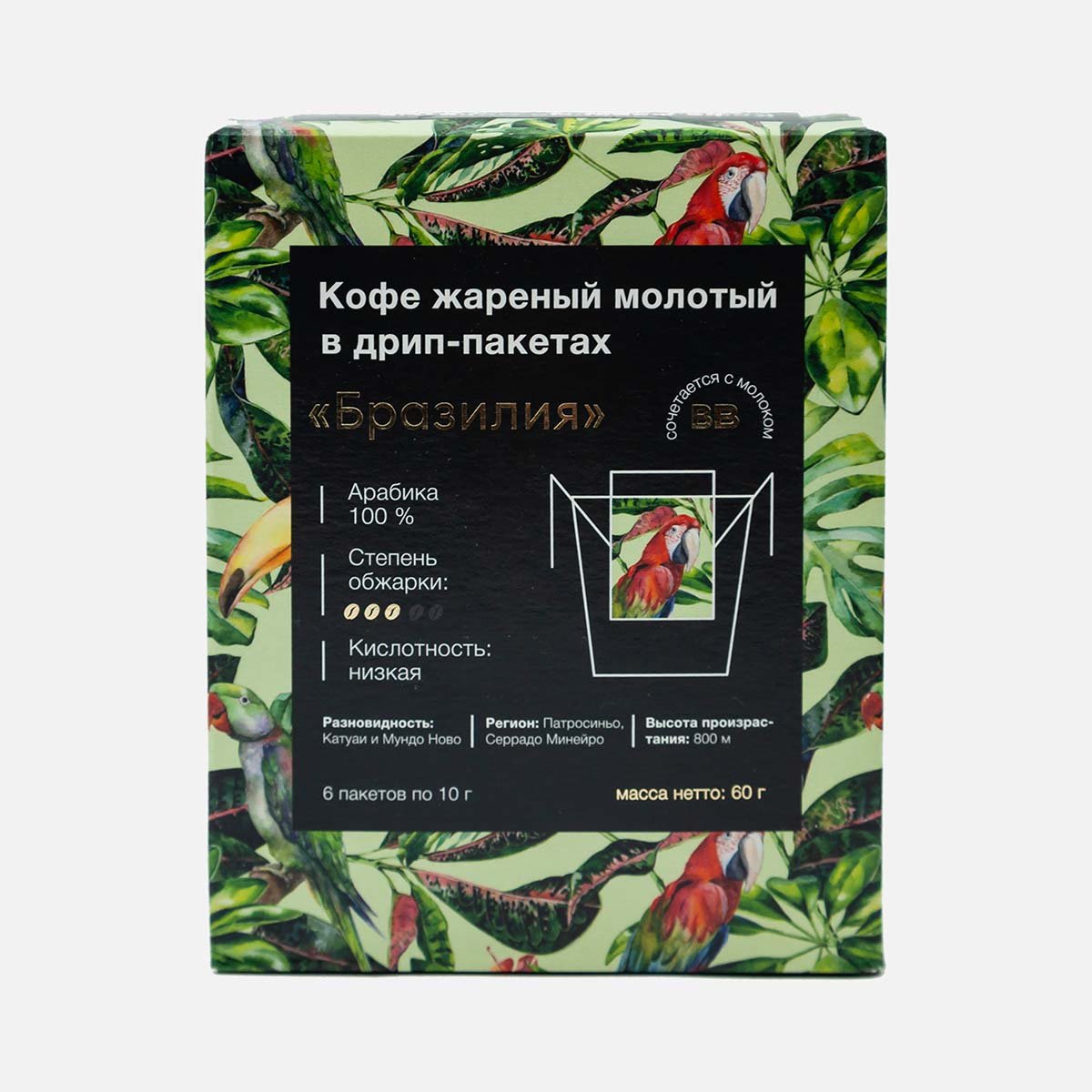 Кофе Вкусвилл Бразилия молотый в дрип-пакетах 60г