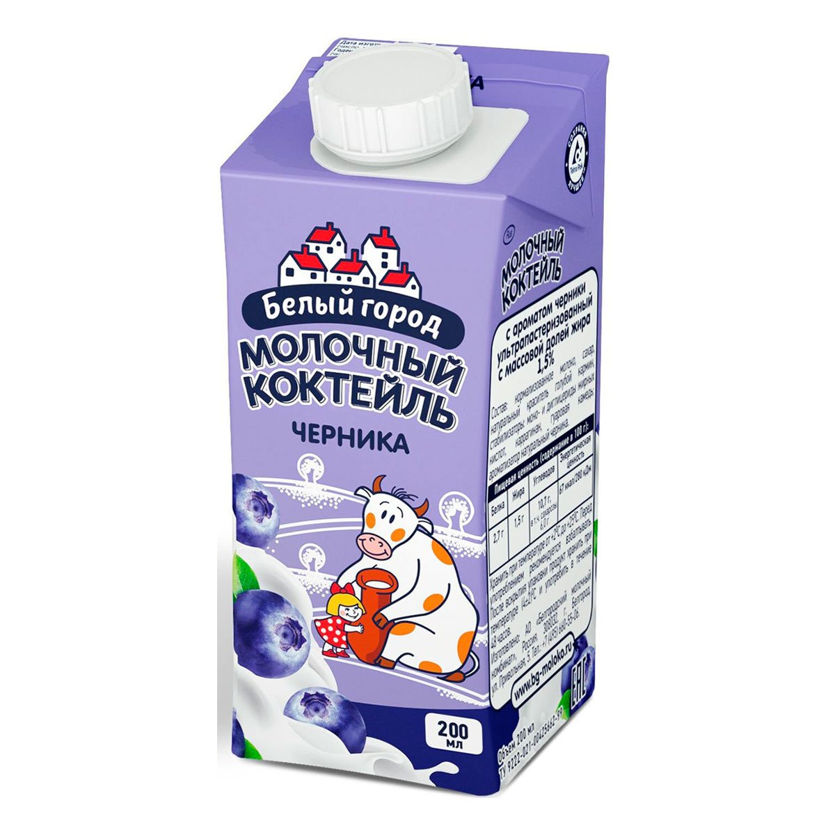 Коктейль молочный Белый город Черника ультрапастеризованный 1.5% 200мл