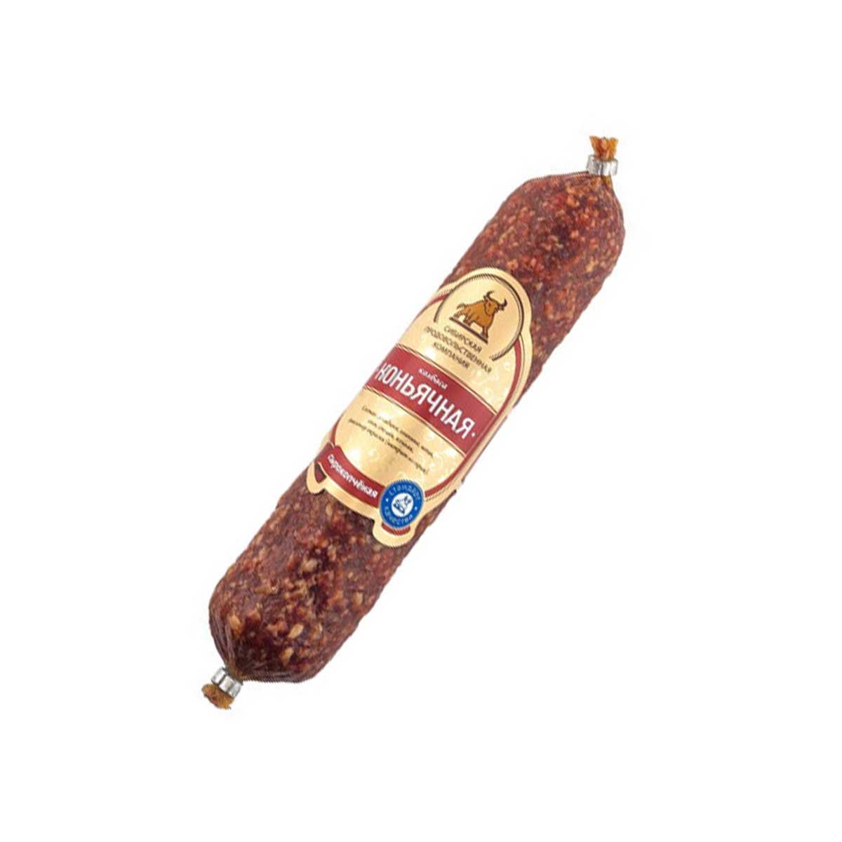 Говядина, шпик хребтовый, гидратированный соевый белок, свинина, нитритно-посолочная смесь (соль, фиксатор окраски: нитрит натрия), усилитель вкуса и аромата (Е621), антиокислитель (Е3, Е31), сахар-песок, специи, экстраты натуральных специй, ароматизаторы натуральные, стартовые культуры.