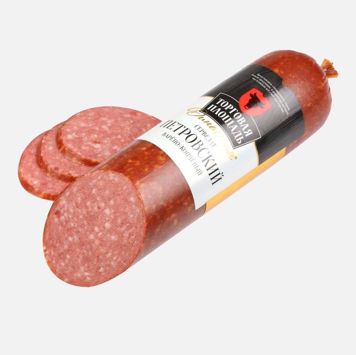 Колбаса Торговая площадь Сервелат Петровский в/к в/с газ/ср вес