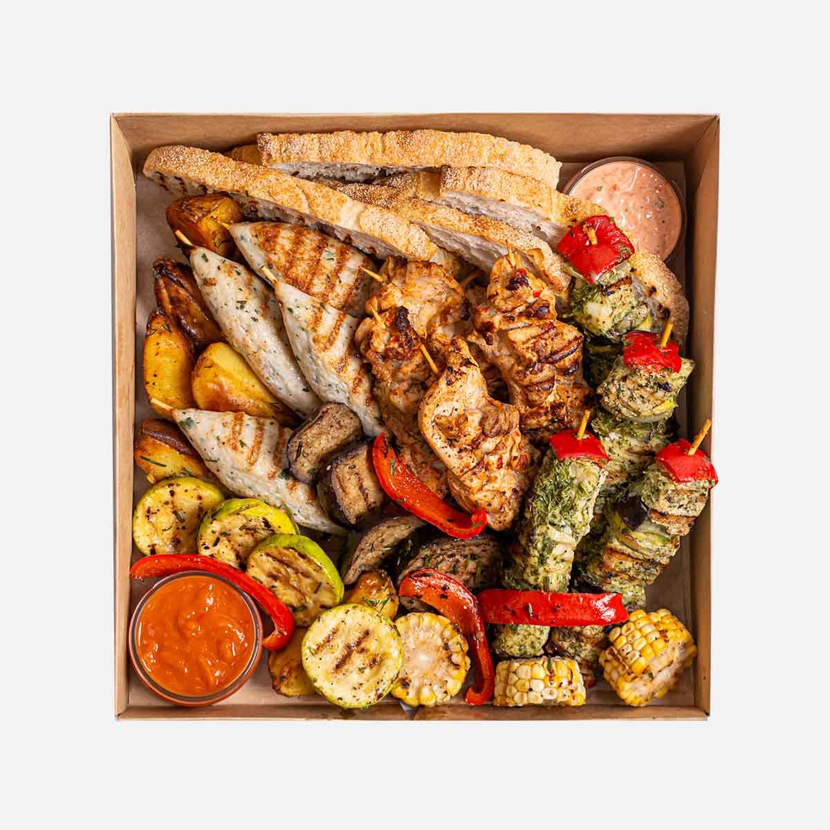 Люля-кебаб из курицы: мясо цыпленка, лук репчатый свежий, чеснок свежий, масло сливочное, зелень свежая, смесь 4 перца, соль пищевая. Белки-15,5,Жиры-25,0,Углеводы-2,5;297ккал/1247,4кдж. Шашлычок куриный жареный: мякоть цыпленка без кожи, майонез, аджика, перец красный молотый, паприка молотая, уксус столовый, масло подсолнечное, соль поваренная пищевая. Белки-19,35,Жиры-27,99,Углеводы-1,21; 334,1ккал/1403,3кдж. Шашлык Кавказский с овощами жареный: свинина мякоть, лук репчатый, кабачки, перец болгарский, баклажан, соус Айоли. Белки-15,95,Жиры-45,15,Углеводы-2,31. Соус 1000 островов: Белки-1,2,Жиры-21,4,Углеводы-10,0; 195,4ккал/820,7кдж. Соус кисло-сладкий Белки-2,7,Жиры-20,0,Углеводы-28,4, Овощи микс: кабачки, баклажаны, перец болгарский, кукуруза с/м, масло под., розмарин, соль, перец ч/м. Белки-6,18,Жиры-7,15,Углеводы-11,92; 136,81ккал/574,6кдж. Хлеб Чиабатта Белки-7,7,Жиры-3,8,Углеводы-47,8; 256,2ккал/1076кдж