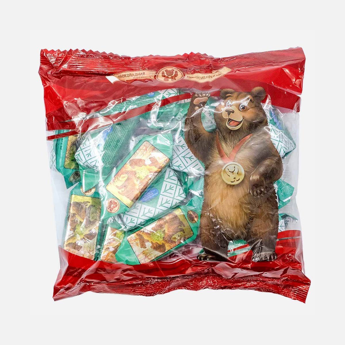 Реплика на классические конфеты "Мишка на Севере": молочный шоколад, хрустящие вафли, ореховая крошка.