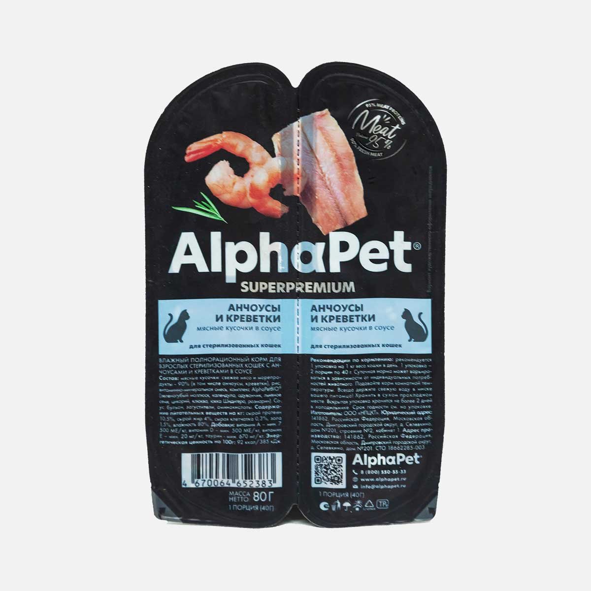 Корм АльфаПет д/кош стерил Анчоусы креветки в соусе 80г