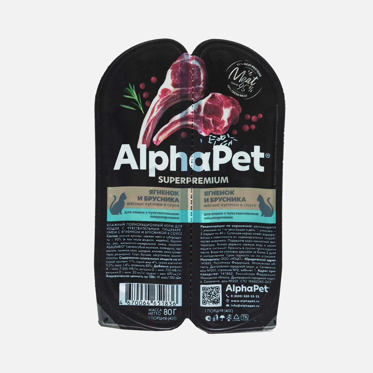 Корм АльфаПет д/кошек с чув пищев Ягненок и брусника 80г