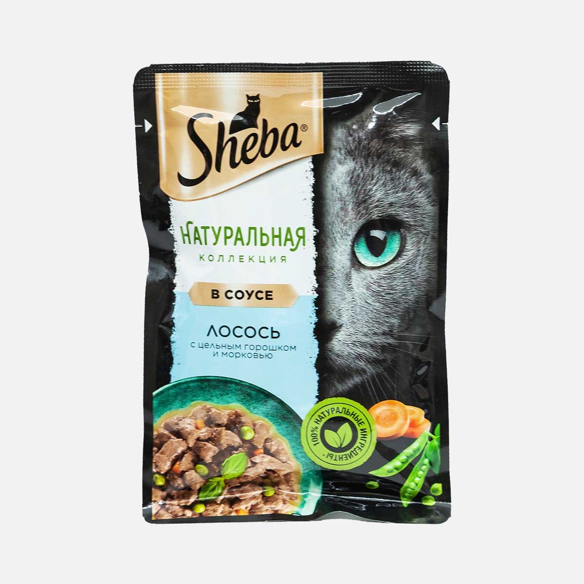 Корм Шеба Нэйчэрз Лосось с цельным горошком в соусе пауч 75г