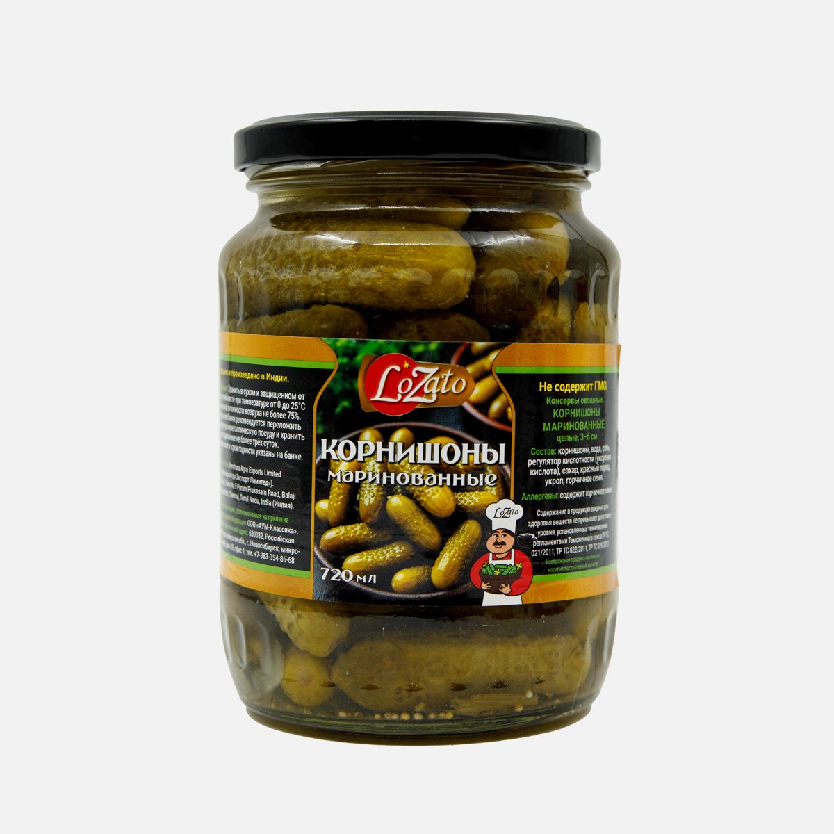Корнишоны ЛоЗато целые 3-6см маринованные ст/б 720мл