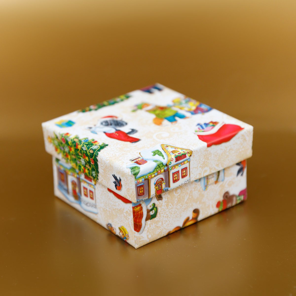 Коробка квадрат Новогодние советск зверята 7х7х4см картон