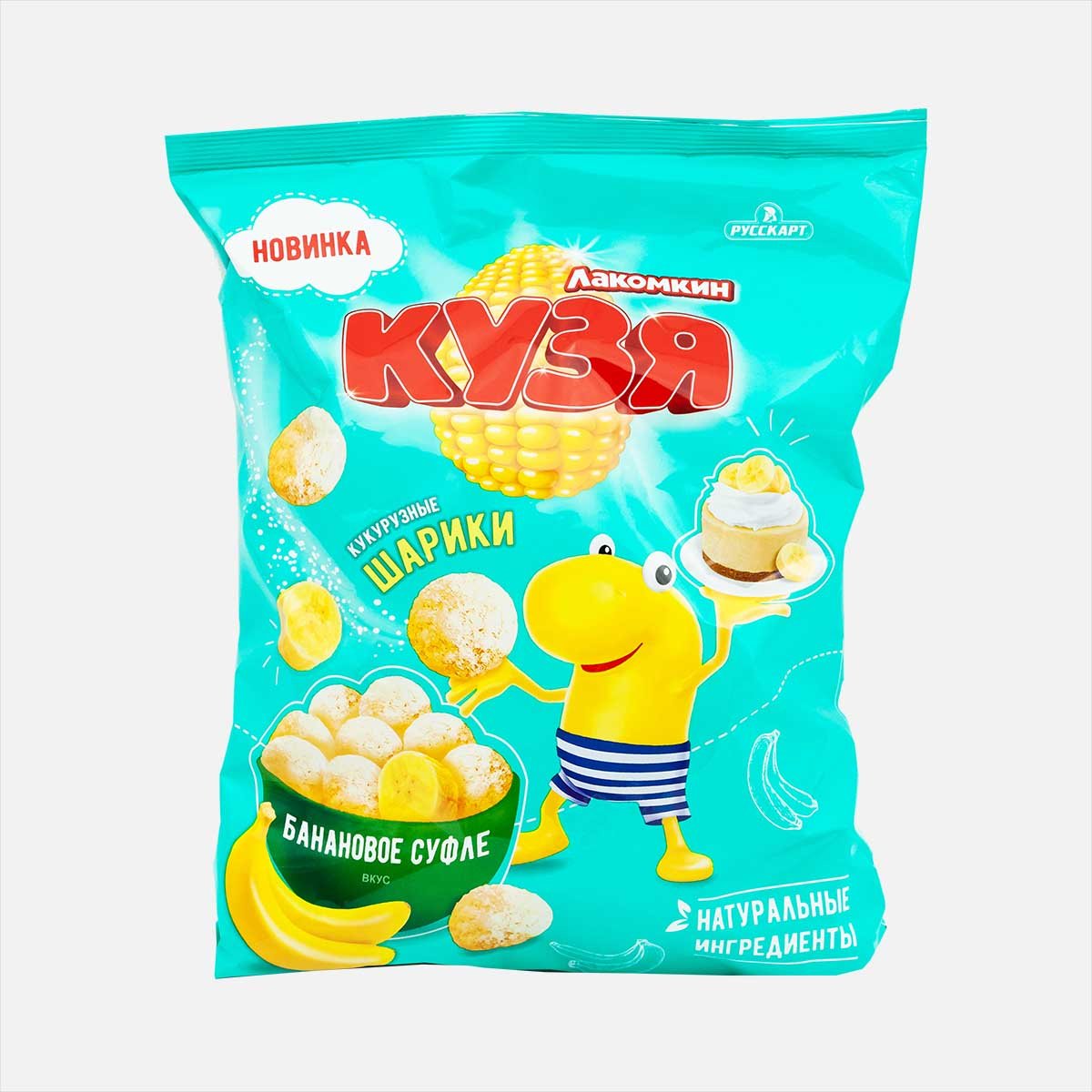 Кукурузные шарики Кузя Лакомкин со вкусом банановое суфле 100г