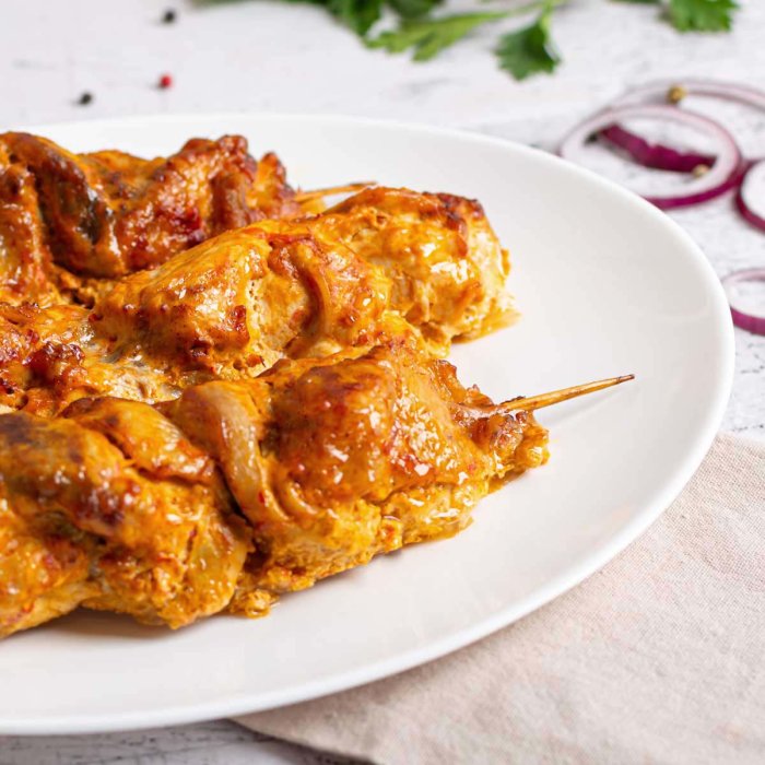 Мякоть цыпленка с кожей, майонез, аджика, перец красный молотый, масло подсолнечное, соль поваренная пищевая.