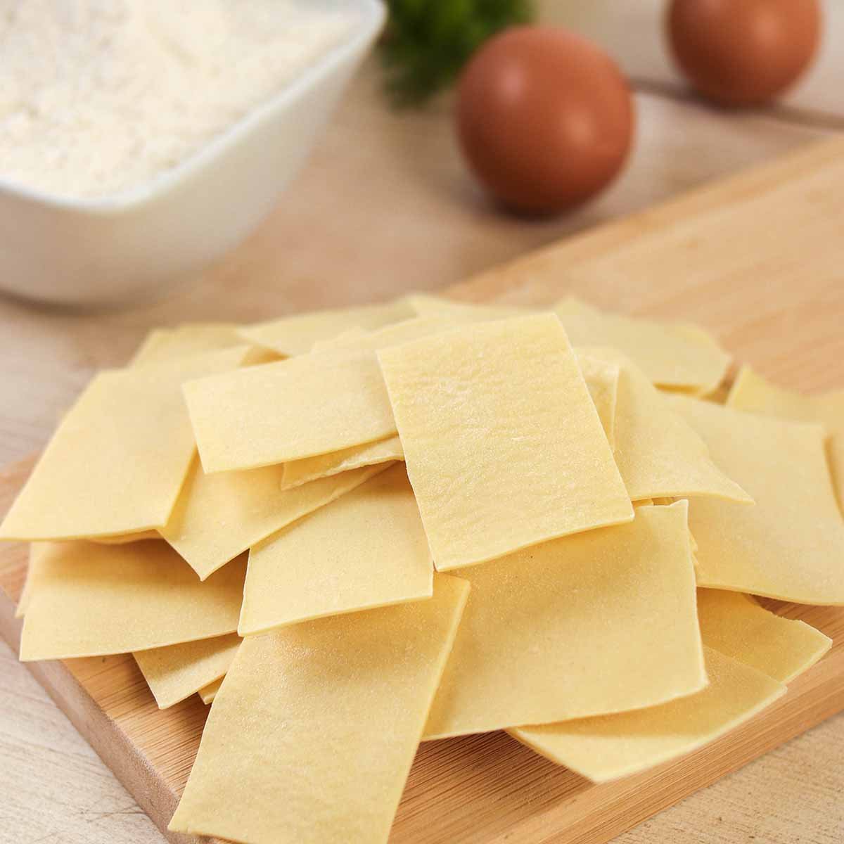 Тонко раскатанные пластинки теста из муки высшего сорта, яиц и соли. Домашняя качественная заготовка позволит вам легко и без хлопот приготовить национальное блюдо. Открывайте новые грани кулинарного искусства вместе с нами!